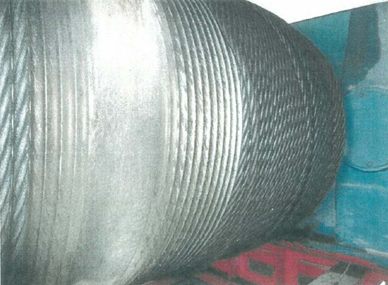 圖① 中國船廠設(shè)備使用狀況圖片,沒有加裝涂油器,鋼絲繩表面“干枯”: